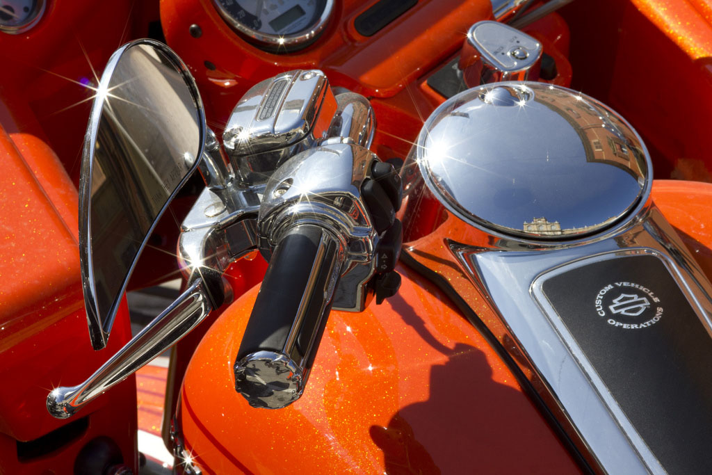 le Harley sono sempre spunti interessanti da fotografare: nei raduni sono presenti personaggi particolari e le cromature sono ottime per i riflessi.