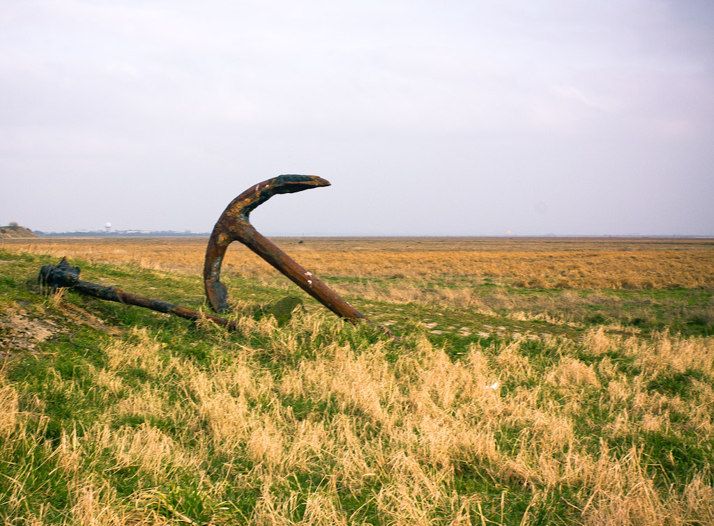 trovo che la composizione sia troppo centrale (sia l'orizzonte che l'ancora). Il cielo poco interessante, meriterebbe meno spazio. Un taglio sulla parte superiore potrebbe giovare. Tuttavia la luce rimane piuttosto piatta, mentre tecnicamente parlando l'immagine pecca di focus (si nota sopratutto sull'ancora) ed il cielo avrebbe forse richiesto l'utilizzo di un filtro graduato per acquisire un pizzico di drammaticitá in piú.