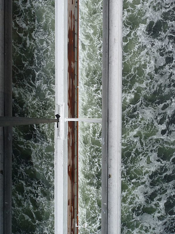Non si afferra subito, al primo sguardo, dove sta la via di salita, dove invece ci si affaccia all'abisso. Da un lato l'illusione, dall'altra il rabbioso spumeggiare della onde del mare del Nord. Ho una foto simile nel mio portfolio, e tu lo sai, ma così differente dalla tua. Qui c'è rigore di linee, spazi orizzontali resi verticali dalla tua scelta compositiva. Una nave da crociera può essere più stimolante di una miniera, per un occhio attento, quando si sanno cogliere angoli e geometrie, diamanti grezzi potenzialmente mutanti in gemme finemente lavorate.