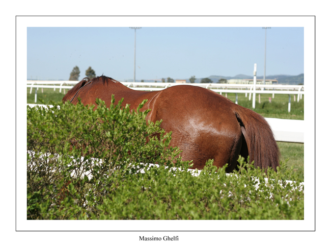 ... dai che si scherza... un pò d'ironia non guasta ma tornando a parlare di fotografia intuisco un'occasione persa nel raccontare, magari stringendo la composizione e variando il punto di ripresa, la sinuosità delle forme del cavallo, da sempre spunto d'esercizio per la pittura e la scultura.