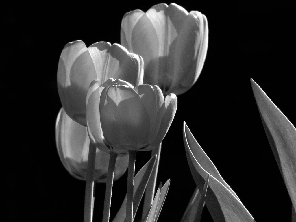 Questa foto è stata fatta con una vecchia Lumix FZ20, e i limiti dell'apparecchio si vedono tutti, ma volevo vedere se riuscivo a descrivere in b&n la particolare condizione di luce che colpiva questi tulipani.