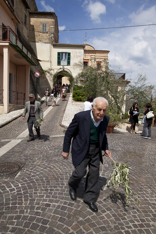 Ho ripreso una scena di vita nel momento in cui in un paesino della Sabina la gente usciva dalla messa con un rametto d'ulivo in mano.