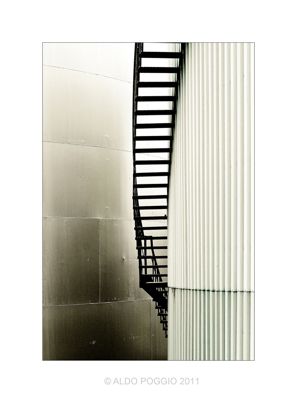 Tecnicamente uno scatto ineccepibile, per come hai sfruttato una luce favorevole, diffusa ma idonea a scolpire le forme, per accostare toni e motivo grafici delle due pareti, sfruttando il catalizzatore della scalinata.