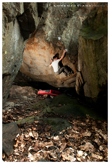 Il giovane (e fortissimo) magnus alle prese con i nuovi blocchi che abbiamo pulito in val gesso.