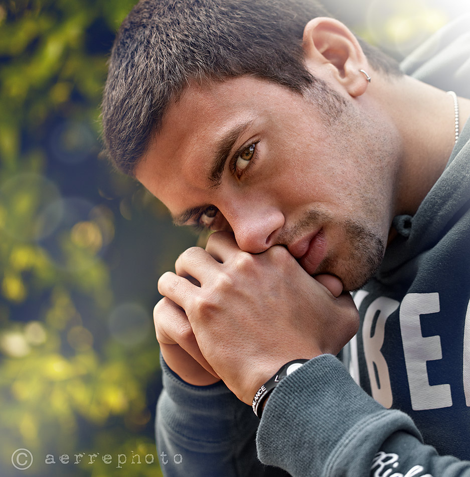 @ blueanto: ...tante volte ho provato a giocare con i flare anche "sopra" ...ma poi non mi convince del tutto l'effetto. L'obiettivo è il 100 macro 2.8 L IS. Tieni conto che la spalliera verde è a 20-30 cm dietro Marco e nonostante questo a 2.8 è riuscito a sfocare la texture di foglie in modo notevole.