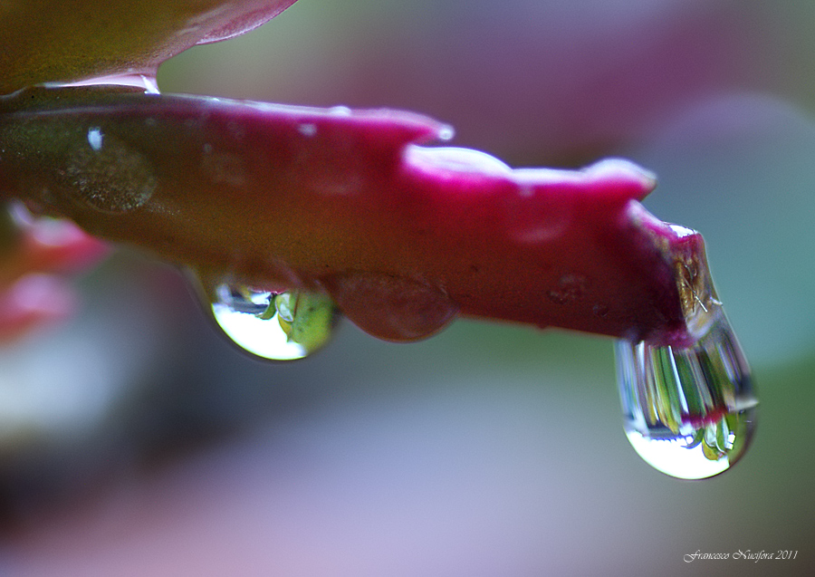 Il soggetto passa in secondo piano, perchè la parte sfocata della piantina che regge le gocce appare troppo evidente assorbendo l'attenzione di chi osserva. Meglio sarebbe stato in ripresa effettuarne un taglio. _________________ Pierluigi |