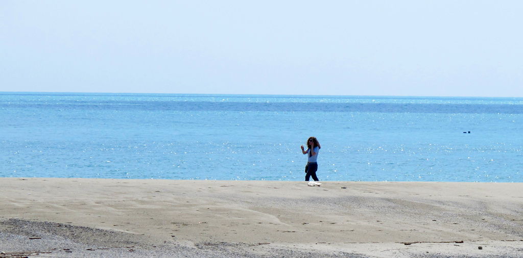 Si, c'é una foto su in-public geniale, praticamente nel triangolo formato dal mare tra cielo e sabbia, ci sta un omino che inizia e finisce esattamente tra i due confini.