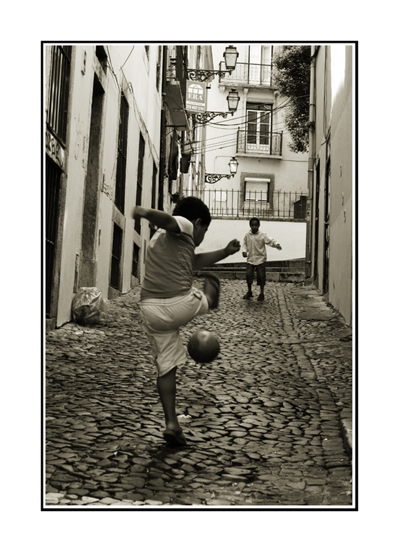 Gulfis si si, sembra proprio sia così tornare a giocare in strada piuttosto che rinchiudersi in casa a giocare alla Play...ma la foto non è stata scattata in Italia se non a Lisbona in un quartiere popolare della capitale Lusitana.