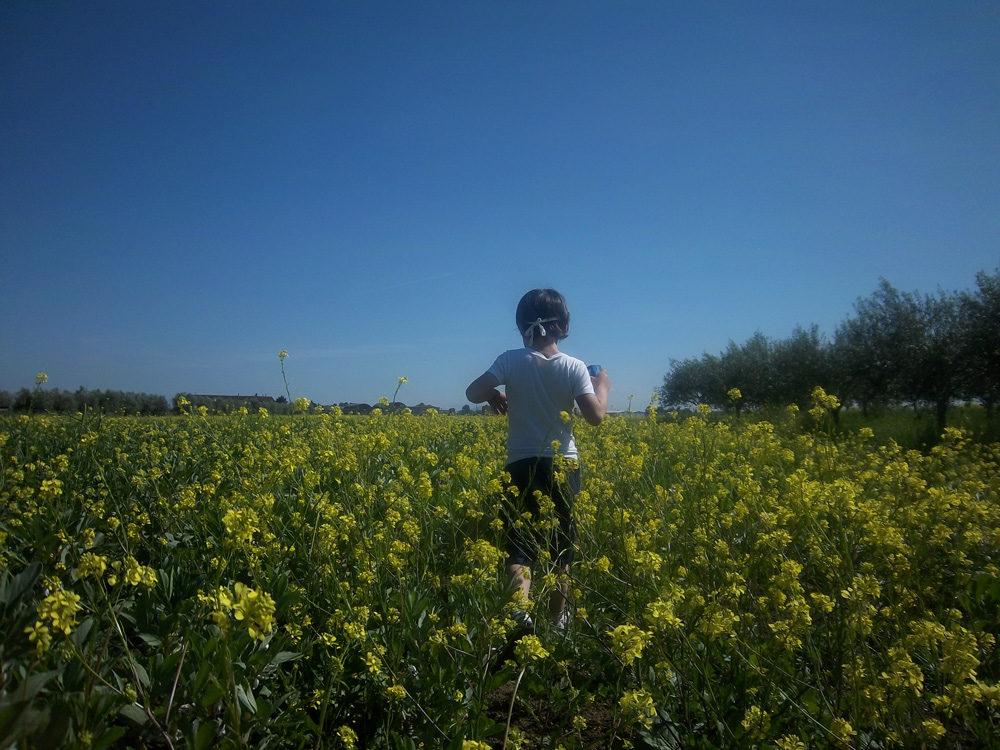 L'idea di avere metà cielo e metà campo con il bimbo tra i due mi piace e mi sembra anche un classico.