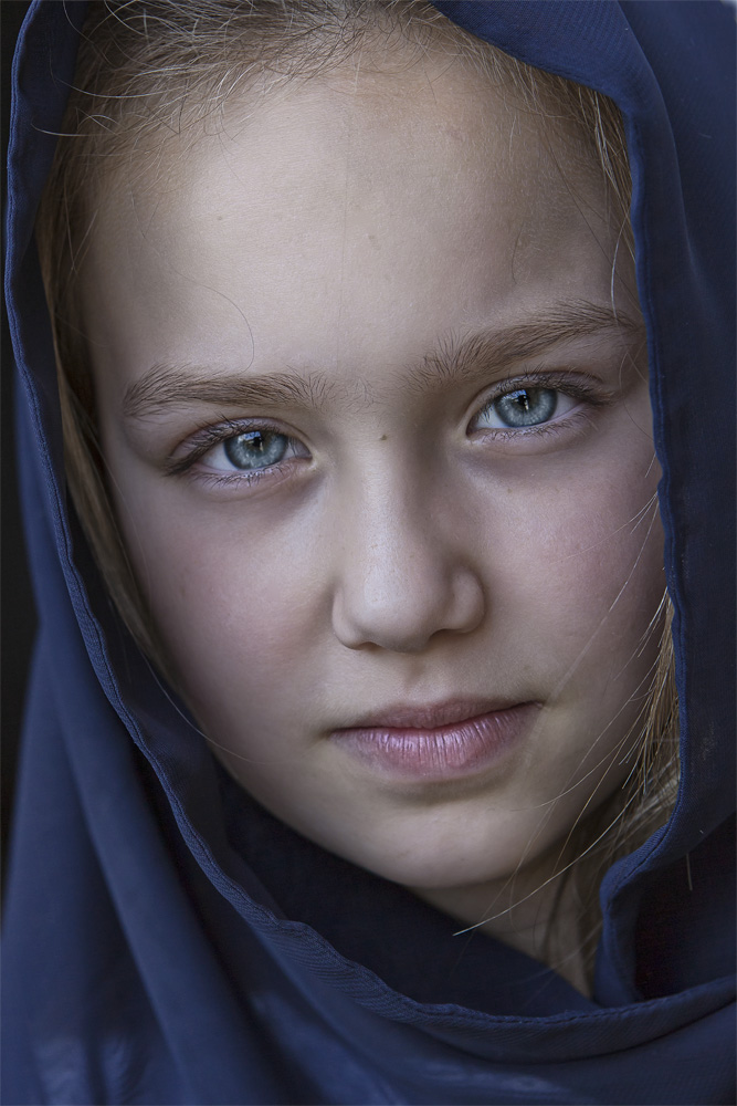 Molto piacevole il duettare del blu e dell'azzurro verde ai lati del delicato tono dell'incarnato, ...incarnato che forse però avrebbe bisogno di una sistematina dei livelli. Le alte luci sono tenute troppo "basse" la resa generale dell'incarnato è un pò spenta.