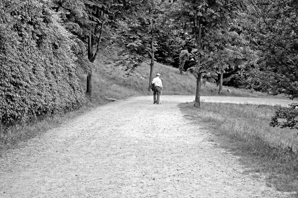 L'unica annotazione: scattando uno o due passi prima, la cintura dell'uomo sarebbe stata allineata con il bordo della strada creando una sovrapposizione alternata di toni tra gli abiti e lo sfondo. Almeno io la vedo così...