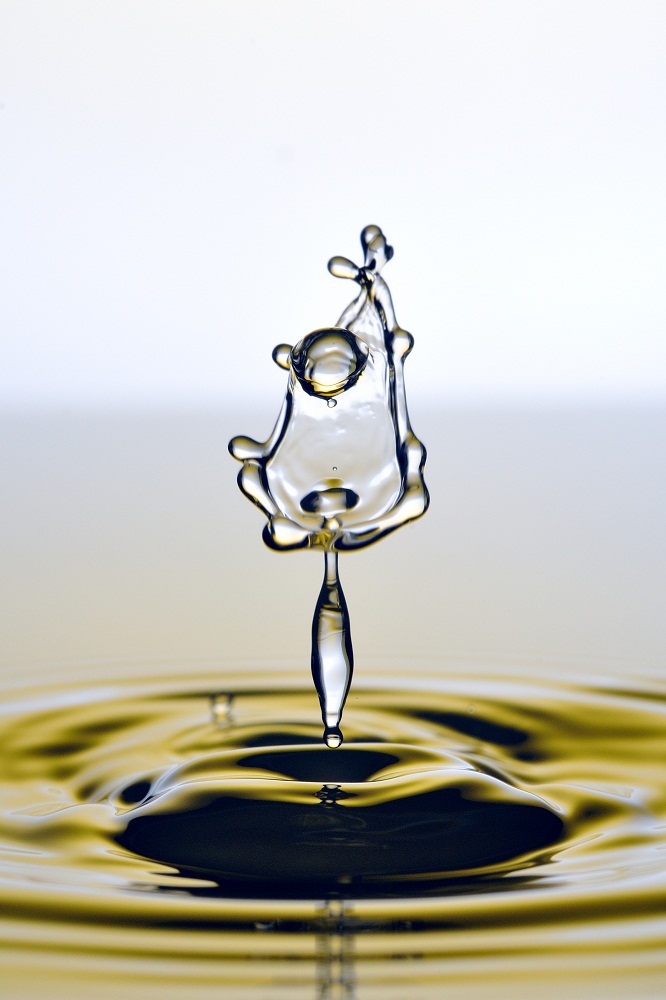 Domanda: ma è acqua o un altro liquido? Con quella gelatina gialla sembra olio... come si ottengono queste forme del liquido? sembra quasi un omino con due lunghe braccia che gioca a palla!