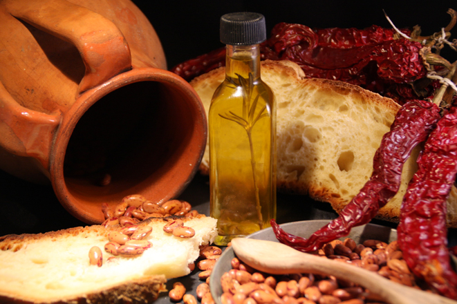 L'idea d'assieme è ottima ma come tu stesso potrai notare la sfocatura del peperoncino (.......buono Very Happy ) a destra disturba e distrae e le luci sono un poco altine. Vedi il pane e i riflessi sulla bottiglia.