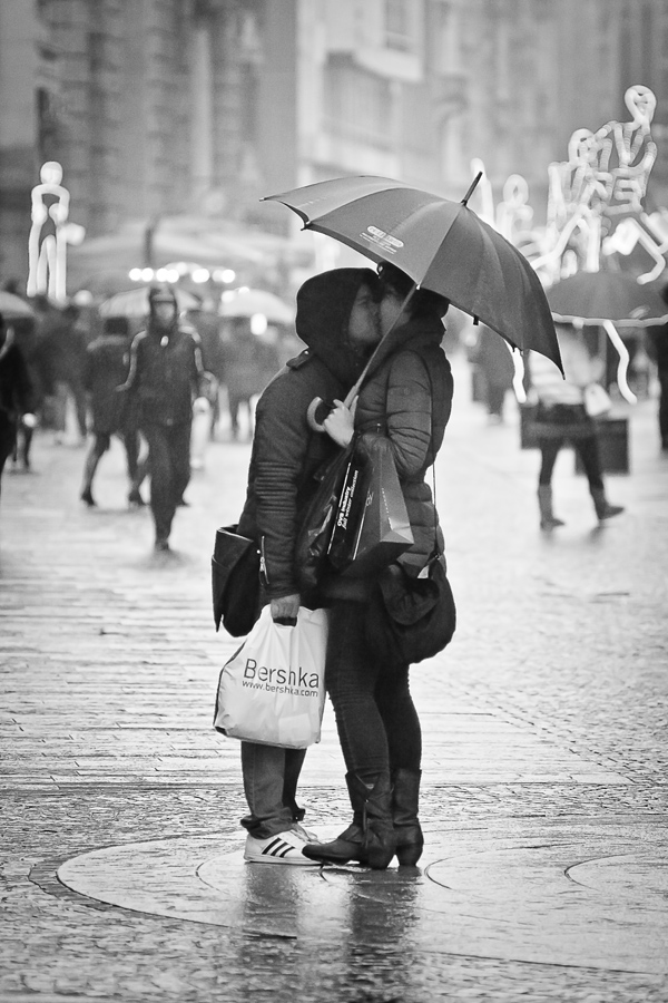 omaggio a Doisneau o a Jorgensen? Ad ogni modo non copia ma reinterpretazione... direi financhè didattica di come, proprio rispetto a quegli scatti, sia cambiato il contorno, e forse non solo quello, di un semplice bacio...