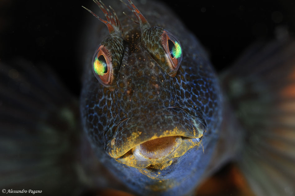 Ebbene si questo blennide abita in uno degli innumerevoli tubi metallici di un vecchio relitto rugginoso.