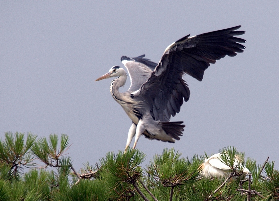 Molto buono il momento colto ma l'immagine soffre di un forte rumore e mi pare il fuoco sia anticipato sugli aghi del pino sotto le zampe dell'airone.
