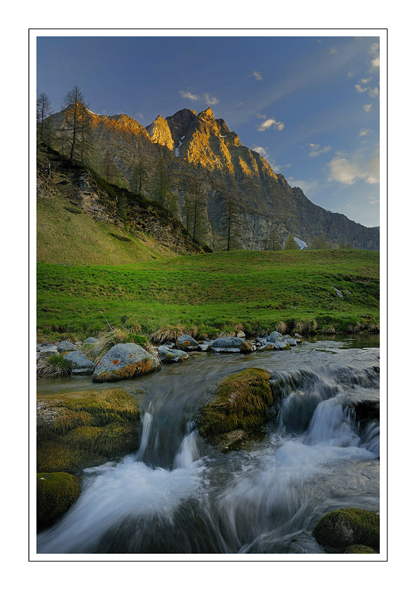personalmente preferisco la versione con i verdi meno carichi, ma rimane il fatto che e' un gran bello scatto! hai colto bene la luce calda sulle cime, in contrasto con la luce fredda del torrente Devero!
