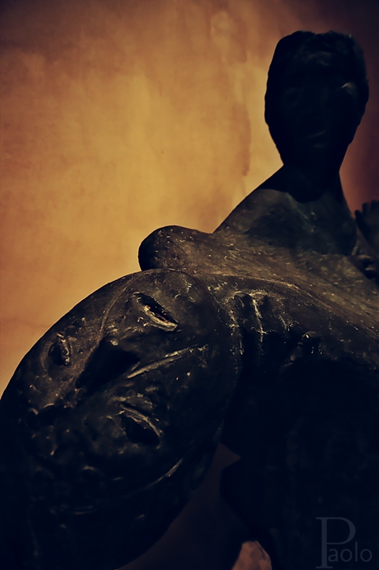 della seconda statua si percepisce solo la silhouette, la rende molto misteriosa,
