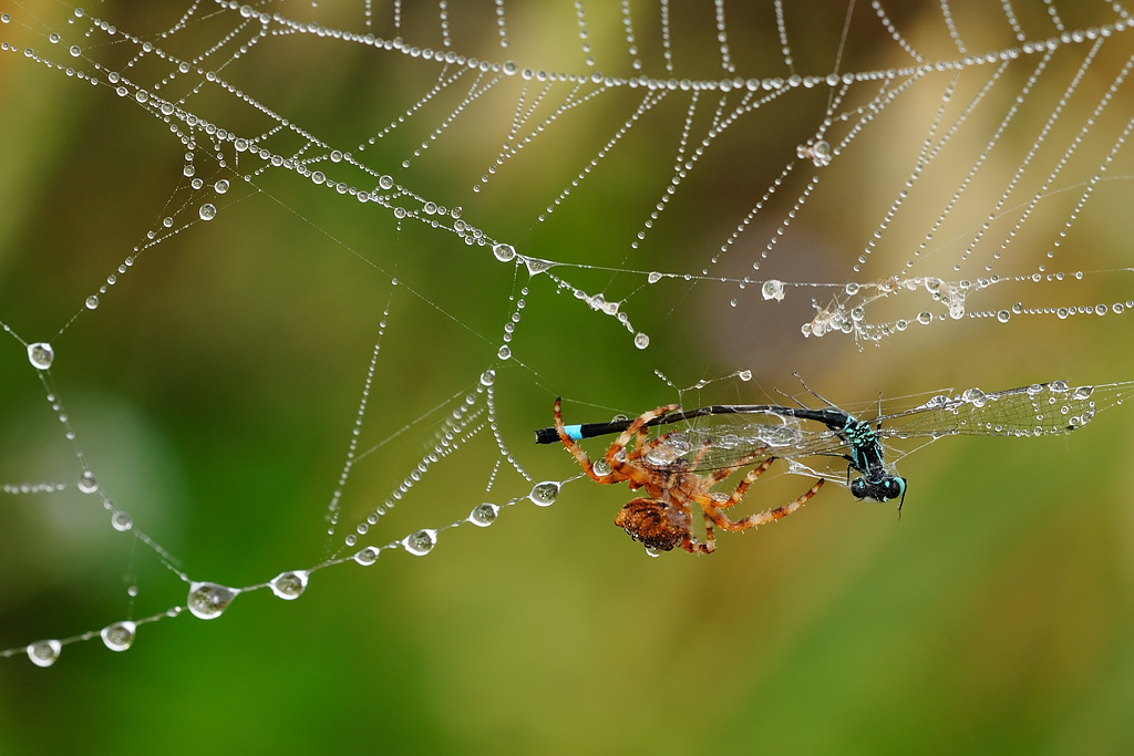 Una bella foto, impreziosita dalla rugiada che crea tante collane di perle.