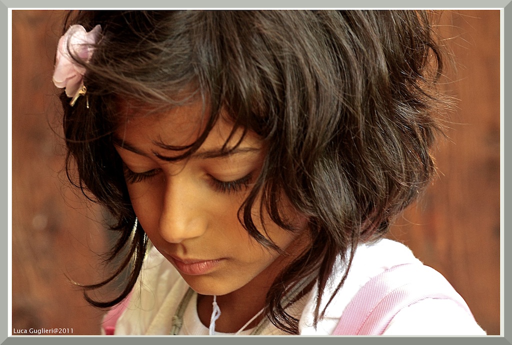 La tua foto per me denota attenzione, rispetto per il tuo soggetto, e voglia di conoscenza vera dell'altro. In sè davvero non è male, anche se tecnicamente non è esente da qualche problemino. Il famoso fuoco sullo sguardo qui viene a mancare. Non si tratta di un dogma di seguire scolasticamente, coem già sottolineato da Mario priam di me, ma di una regola che bosogna infrangere però solo un poche occasioni. Se il fuoco sulle palpebre, pur intimamen te abbassate inqeusto bel atteggiamento pensoso, fosse stato più fermo, tutto avrebbe un altro aspetto. Attenzione n anche alle parti chiare che, più che sforare di gamma, non restituiscono che pochi particoalri leggibili. C'è nel forum, se magari non lo hai ancora ben studiato, un bellissimo tutorial di aerre sul ritratton e i suoi segreti.
