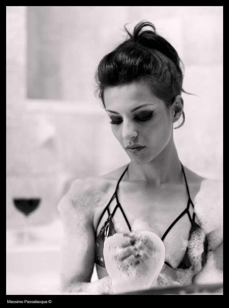 ad esempio, la schiuma sulle spalle allontana dal semplice gesto di lavarsi le mani, ma allora non mi spiego perchè mantenere il costume (e con questo non intendo che l'avrei preferita nuda )