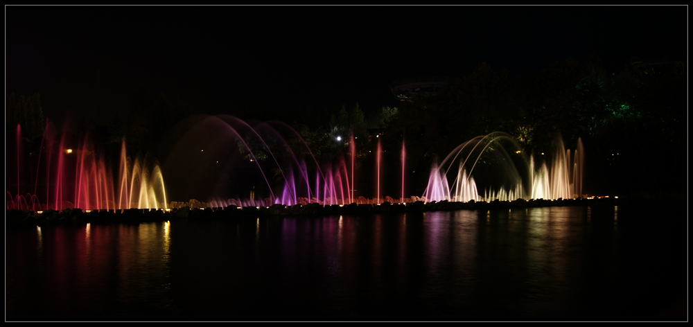 Immagino visto il tempo d'esposizione tu abbia usato un cavalletto, quindi avrei tenuto la base delle fontane non inclinate, ma rette, in più avrei spostato alla dx di chi osserva l'inquadratura dando la possibilità alla luce colorata a sx di rientrare meglio nel fotogramma, eliminando così la parte scura a dx che poco s'addice all'immagine. _________________ Pierluigi |