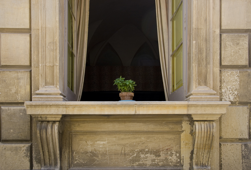 ma secondo me non emerge abbastanza, sicuramente clonerei la base azzurra del sottovaso e abbasserei la penombra dove due lunette più scura affiorano distraendo...infine , scusa se rompo, filerei sui tre lati sx, sopra e dx per stringere verso il basilico