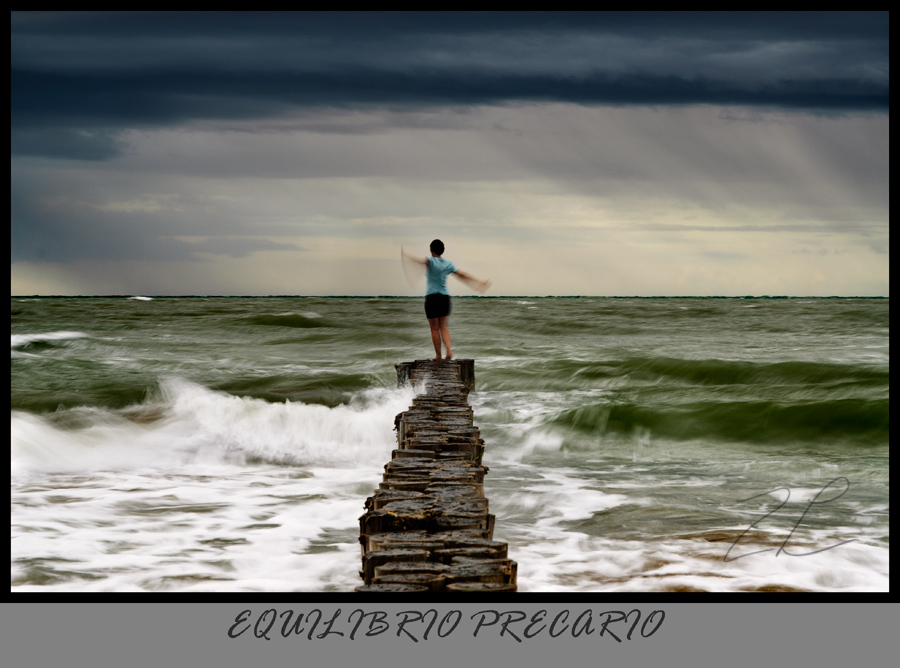 La modella che muove le braccia ed il tempo realetivamente lungo che immortala questo movimento sono perfettamente abbinati alla forza del mare che sembra far perdere l'equilibrio....