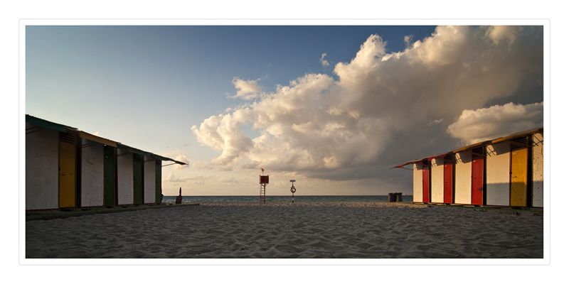 Concordo con Pio. Le linee delle cabine portano lo sguardo verso l'orizzonte, dove la pace del momento crea atmosfera. Ottima la luce radente che permette la perfetta lettura anche nelle zone d'ombra. Ok! Ok! Ok!