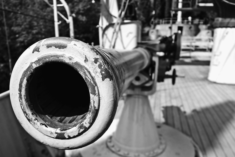 Il bianco e nero mi risulta gradevole, concordo sullo sfondo un pò confuso, ma c'è da comprendere anche il contesto della scena. Forse avrei dato più aria a sx e sotto per vedere la base del cannone.