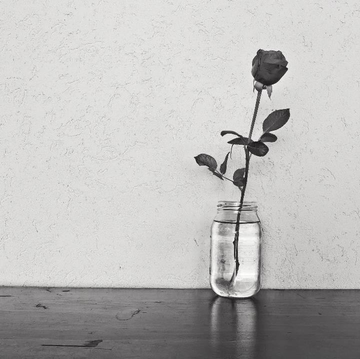 Le foglie non sono tutte intere e con il b/n la rosa sembra avere lo stesso colore delle foglie.