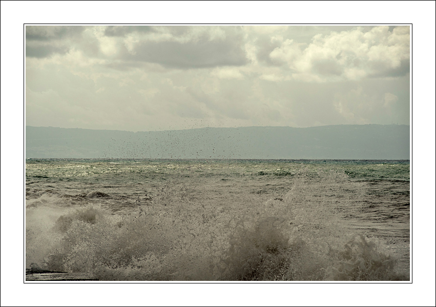 Avverto una chiusura forzata in basso, non di molto ma avrei incluso più piede, in modo da lasciare maggior scena a quelle onde, per mostrarle meglio, sono una parte importante del quadro come centro d'interesse, non l'unico, ma uno dei punti più importanti come forma e come ''soggetto'', l'altro punto meritevole è quella chiazza chiara sul mare, che immagino sia il riflesso del sole che riesce a forare un cielo nuvoloso.