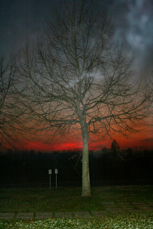 La parte alta dello scatto mi piace, è particolare. la parte bassa è da rivedere. La luce in basso che riflette sull'erba e sulla pianta, quei due cartelli(?) chiari su sfondo nero. _________________ Nikon D90