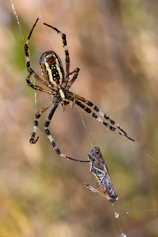 -Famiglia degli Araneidi: Argiope Bruennichi femmina con preda Famiglia degli Acrididi: Omocestus Rufipes
