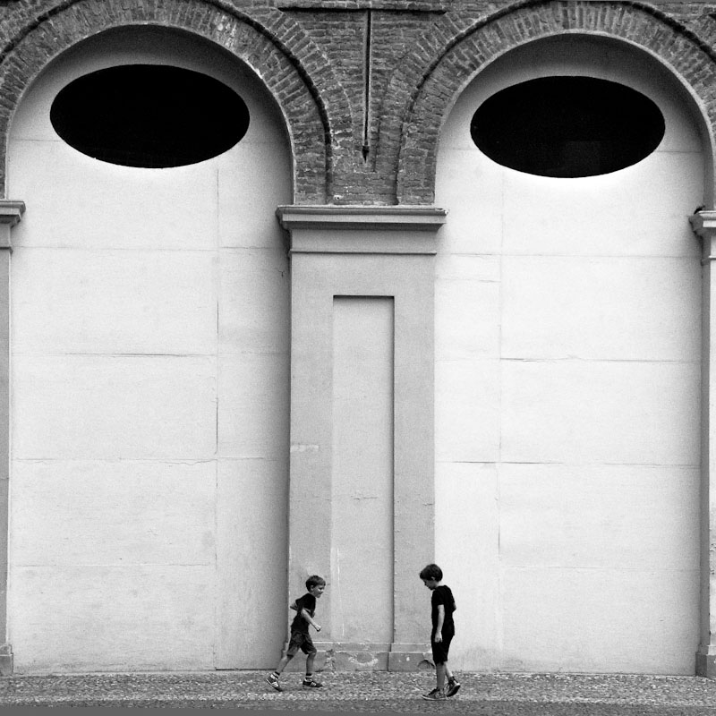 | A me sembra invece che ciascun bambino sotto ad un occhio avrebbe reso la composizione troppo statica, essendo la distanza tra i due simile a quella tra gli occhi. La preferisco così. |