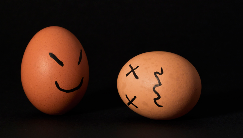 L'espressione dell'uovo sdraiato è azzeccata, mentre l'altro trovo abbia degli occhi un po' troppo cattivi