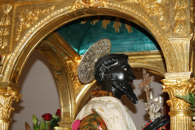 | Un ritratto giustamente postato in varie: il ritratto si fa ad esseri vivi   Purtroppo l'edicola che contiene il santo non lascia spazio a riprese alternative: o di fronte o di profilo, ma sarebbe stato interessante vedere come l'artista ha colorato le labbra e gli occhi.