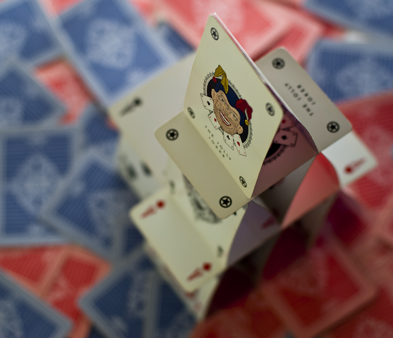 utilizzando un'apertura meno ampia potevi aumentare la pdc che in questo caso produce uno sfocato troppo abbondante e non di eccelsa qualità (quest'ultima senz'altro intrinseca alla lente che hai utilizzato). si poteva forse provare a direzionare la luce in modo più puntiforme sulla carta con il joker che, vista la collocazione nel frame, meritava d'essere maggiormante valorizzata. forse anche un'aggiustatina al bilanciamento del bianco potrebbe rendere maggiormente gradevoli i colori.