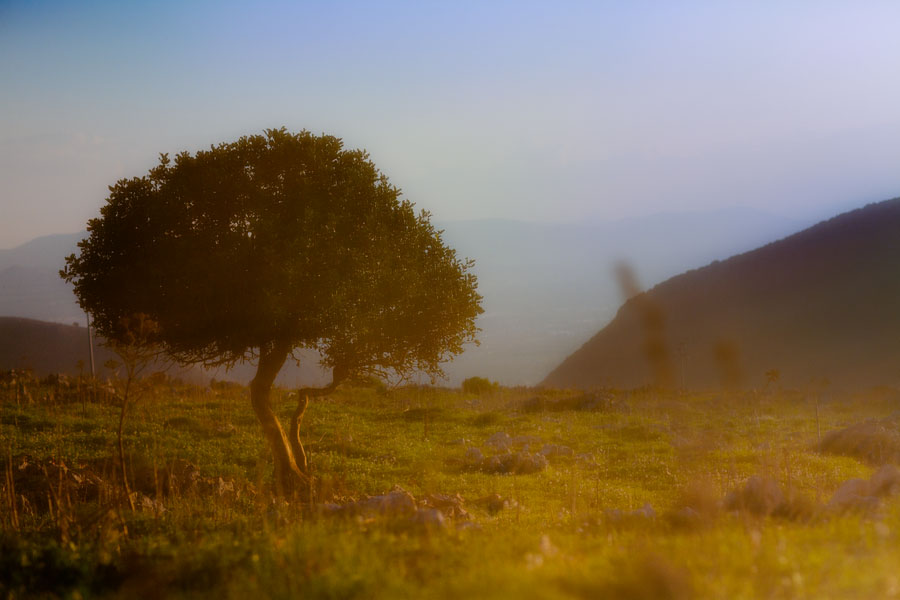 Una splendida luce che però dovrebbe essere accompagnata da un pelino di nitidezza in pù sull'albero e poi sulla destra ci sono que fili d'erba che disturbano un pochino il bel paesaggio.