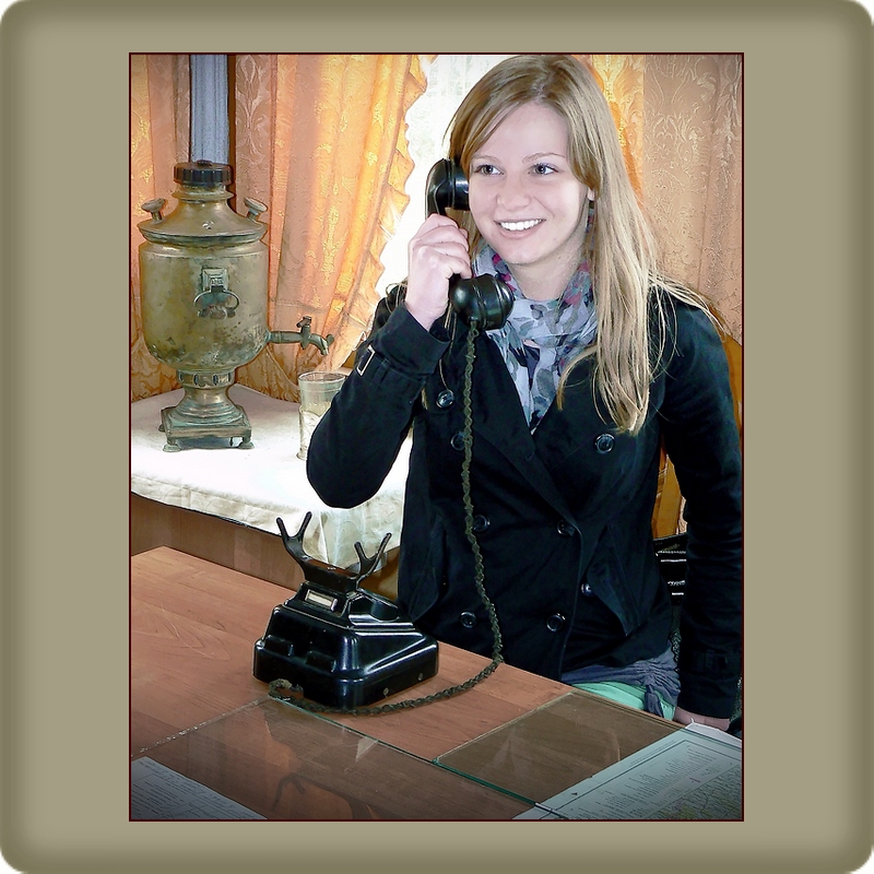 Non solo la location, magari non immediatamente individuabile senza la tua precisazione, ma veramente deliziosa la ragazza, moderna, spigliata, che contrasta in maniera evidentissima con l'epoca suggerita dal vecchio telefono, e dietro, in secondo piano, un samovar, un autentico samovar!