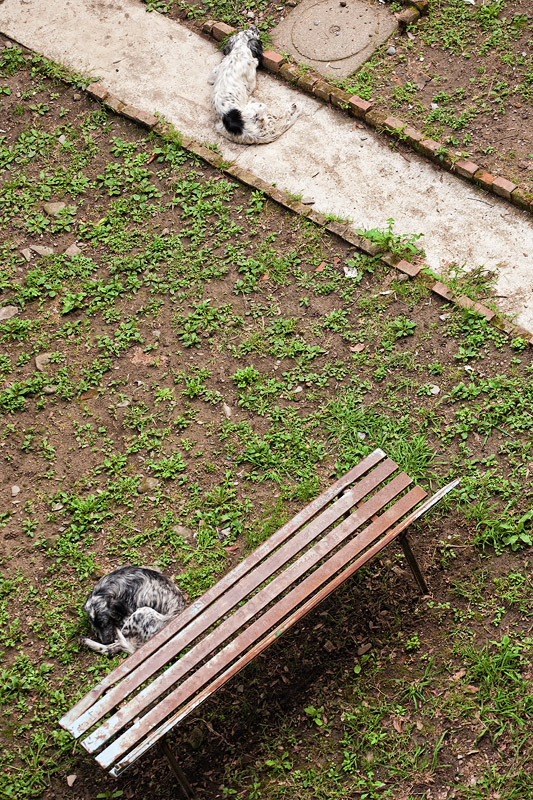 mi piace come hai saputo cogliere nella composizione il gioco di linee e la contrapposizione fra i due cani
