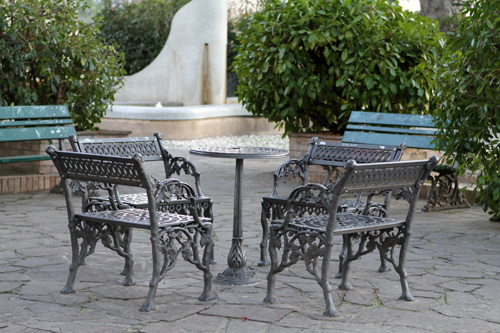 L'ideale sarebbe stata una ripresa dall'alto (immagino non fattibile però..) oppure anche una semplice vignettatura a chiudere su panche e tavolino