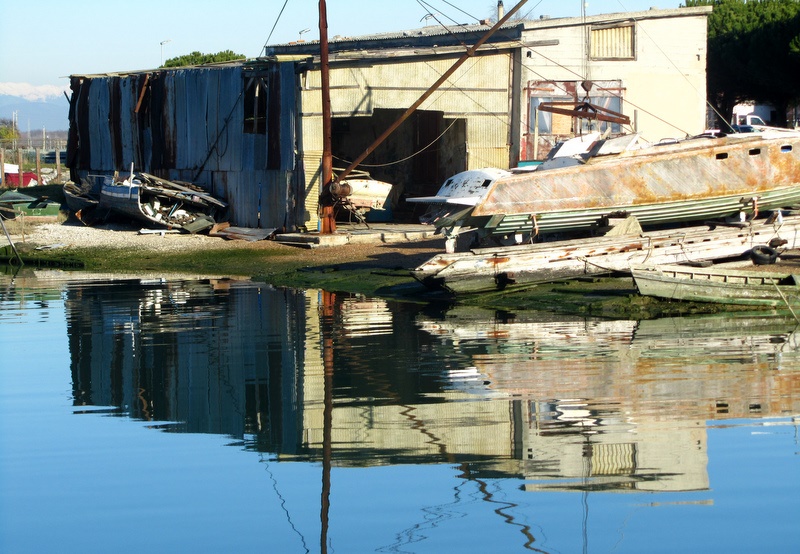 Il caos della rimessa, con tutto sparso a terra e ovunque, si contrappone con la calma dello specchio d'acqua...e questo arriva, ma non avrei tagliato la barca a dx, potendo ovviamente, e la luce andrebbe dosata, abbassando le alteluci, buono il colpo d'occhio...ciao.