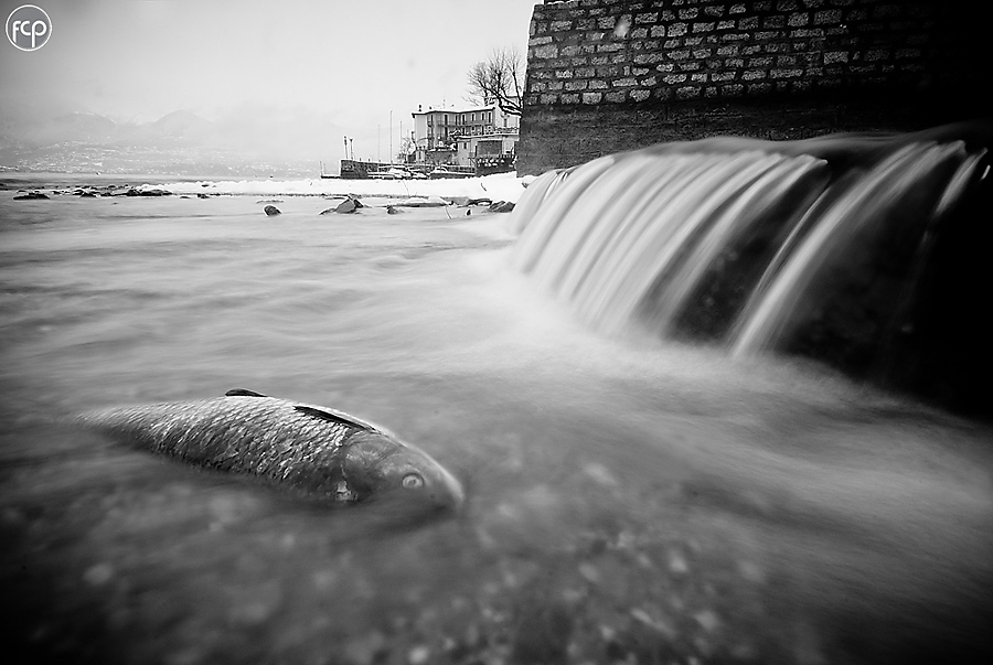 Mi ricollego a quanto detto riguardo all'altra tua foto della serie (http://www.photo4u.it/viewcomment.php?pic_id=562828). Il pesce morto in primo piano rende questa foto più forte e più funzionale al discorso che, come il titolo lascia supporre, tu intendi fare. Anche la scelta dell'uso del b/n asciugando l'immagine ne aumenta la forza. A questo riguardo però trovo che i neri dell'angolo in alto a destra (comprendendo il muro) siano troppo chiusi e con un contrasto eccessivo rispetto al resto dell'immagine, sbilanciandola. La presenza di una contestualizzazione più ampia, come anche accennavo nell'altro commento, consente di collegare il "disastro ambientale" alla presenza umana che le case sullo sfondo suggeriscono, il che mi sembra un ulteriore arricchimento dell'immagine.