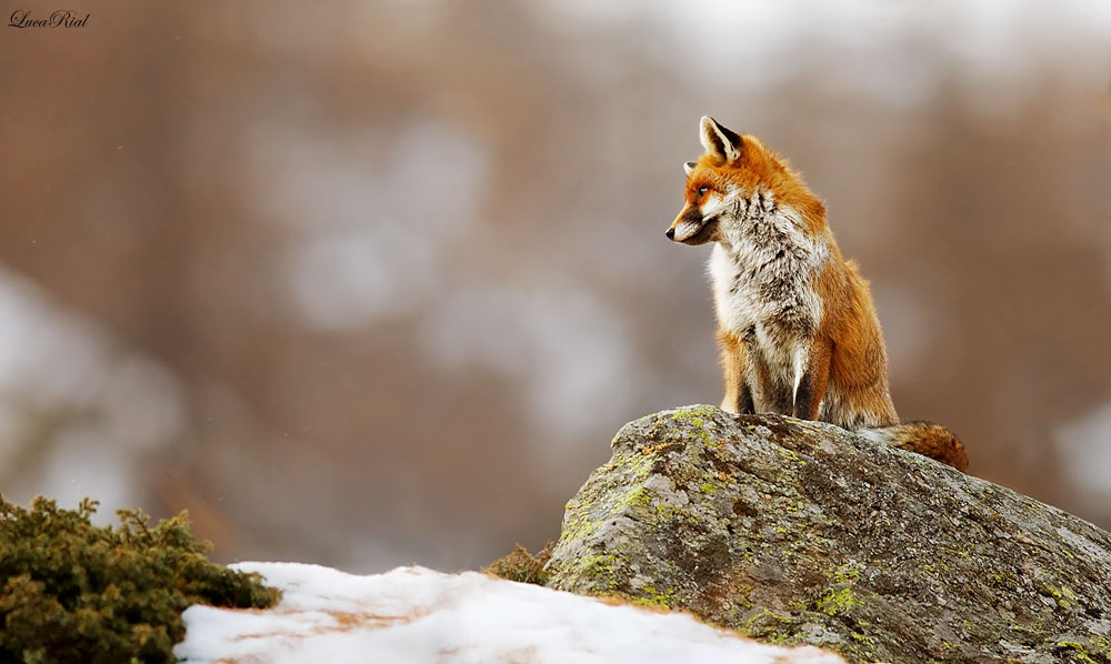 Buono il momento dello scatto, la resa del dettaglio sull'animale e sulla roccia, l'isolamento del soggetto dallo sfondo ampiamente fuori fuoco. Trovo invece che lo sfocato in primo piano, soprattutto la massa nevosa troppo bianca, disturbino abbastanza e dovessero essere ridotte fino a lasciarne un accenno molto contenuto con la necessaria funzione di base della composizione.