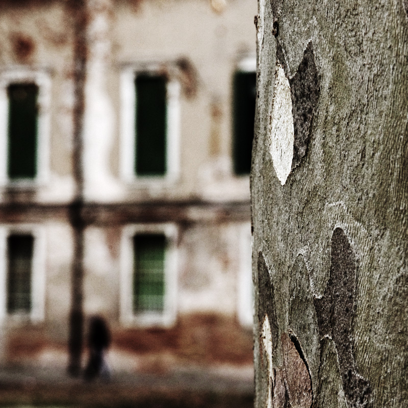 | Interessante punto di vista. Cromaticamente piacevole, con una bella resa pittorica delle aree sfocate. Ne esce una foto evocativa di una atmosfera, quasi astratta. La composizione però avrebbe beneficiato di una maggior attenzione ad alcuni particolari: avrei possibilmente evitato che la sagoma della finestra di destra venisse a contatto con il tronco, come pure che quelle di sinistra fossero così a ridosso del margine del fotogramma. Insistendo sui particolari la sagoma appena riconoscibile di un passante (se non interpreto male) sarebbe stata maggiormente valorizzata se posizionata nell'area più pulita che precede la finestra centrale. Questo tanto per stare a cavillare. Il risultato è comunque buono ed interessante. Ciao, Vittorio.
