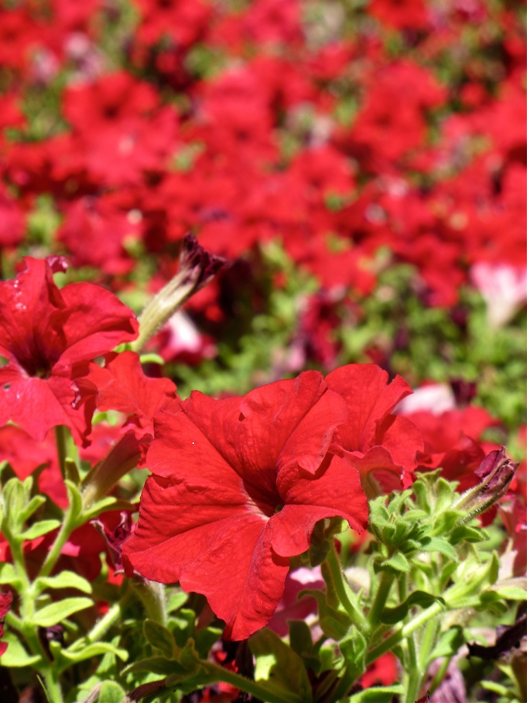 Riguardo la composizione: se fossi indietreggiato una spanna, avresti incluso la surfinia che si vede a sinistra; che a mio avviso, compete con quella protagonista centrale. In alternativa, avresti potuto spostare la scena semplicemente più a sx.