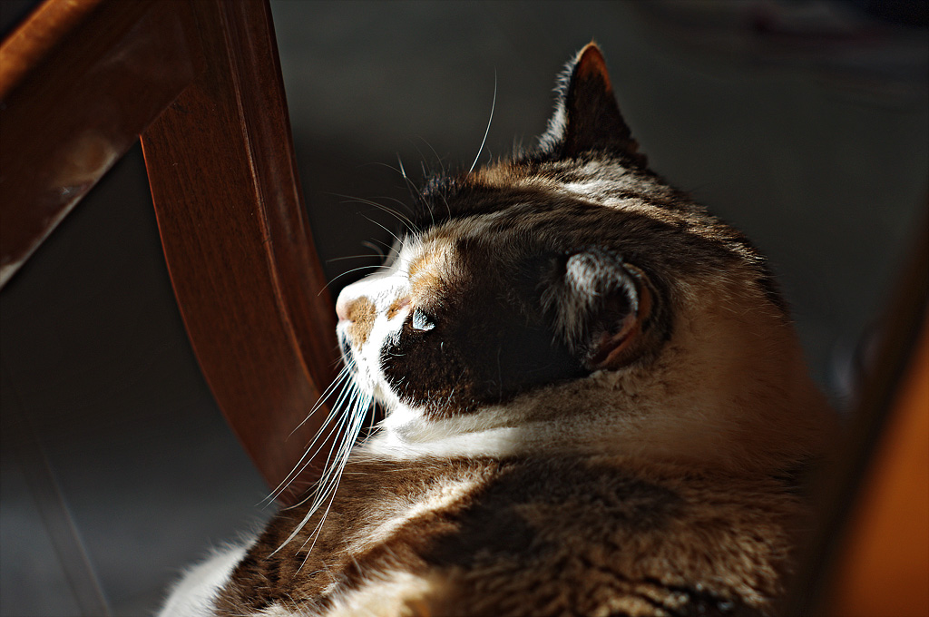 E’ il tuo gatto, è un bel gatto, ma di solito e pure più bello se ne sei il padrone, comunque come ti suggeriva s37h, una ripresa più bassa avrebbe migliorato la situazione … ma una ripresa posizionandoti dall’altra parte dello schienale, sempre se possibile in quanto dalla luce che mi sembra provenire da una finestra, mi pare che non c’è lo spazio necessario, ti avrebbe permesso di ottenere una foto semifrontale molto più performante  _________________ www.sergiosartori.com