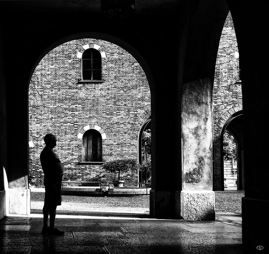 Foto che mi piace molto. La scelta del B/N un po' sparato rende l'immagine, a mio giudizio, piacevole. Molto ben equilibrata la scelta degli archi con la figura umana.  _________________