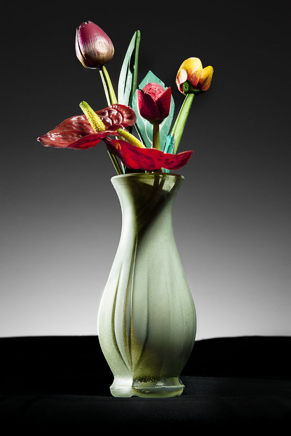 Quello che a me paiono i problemi principali di questa ripresa in still life sono la gestione della luce (varie zone di luci bruciate, contrasto eccessivo e quell'ombra triangolare sul vaso) e una saturazione che a me sembra eccessiva per il genere di foto, e che sui fiori (ma sono veri?) genera colori innaturali. Alcuni fiori risultano penalizzati dalla disposizione della composizione. L'incoerenza nella continuità della linea di separazione sullo sfondo si nota. E' la mia sincera (e ovviamente personale) impressione di questa immagine.